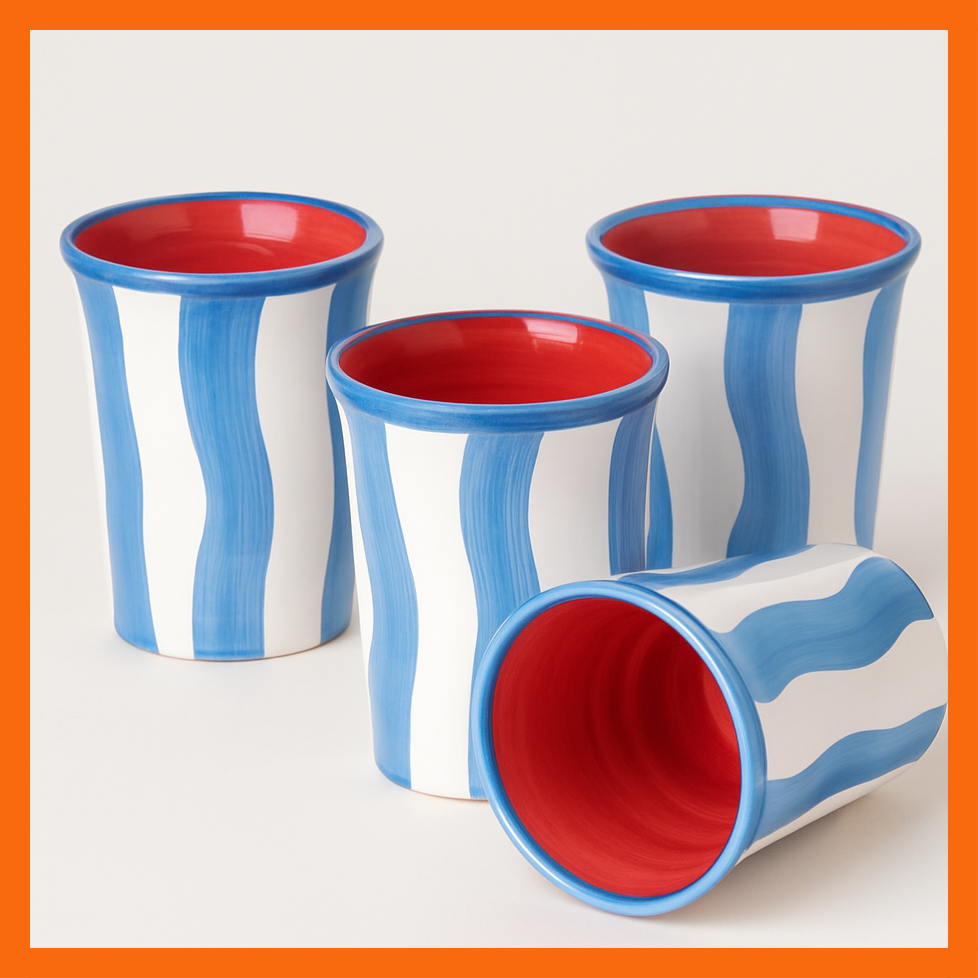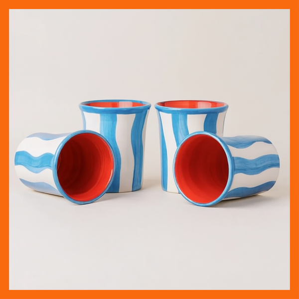 Keramische mok 250 ml/ blauw- rood gestreept (Set van 2st.)