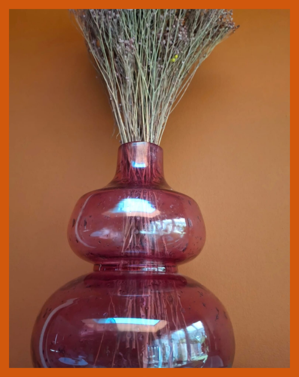 Laat je betoveren door de zachte rondingen en rijke kleur van deze unieke vaas. Met haar dubbele bolvorm straalt ze elegantie en speelsheid tegelijk uit.