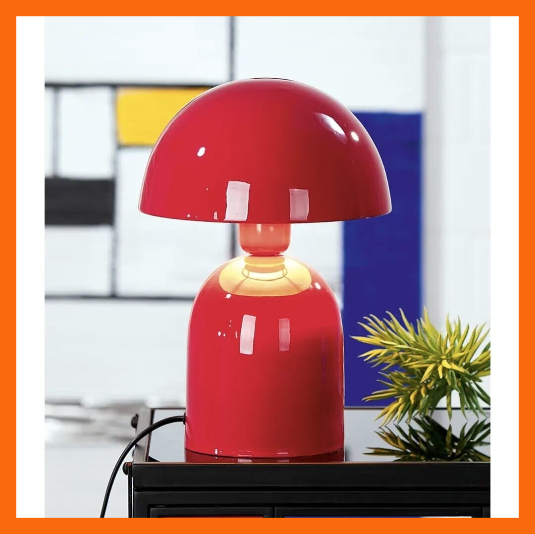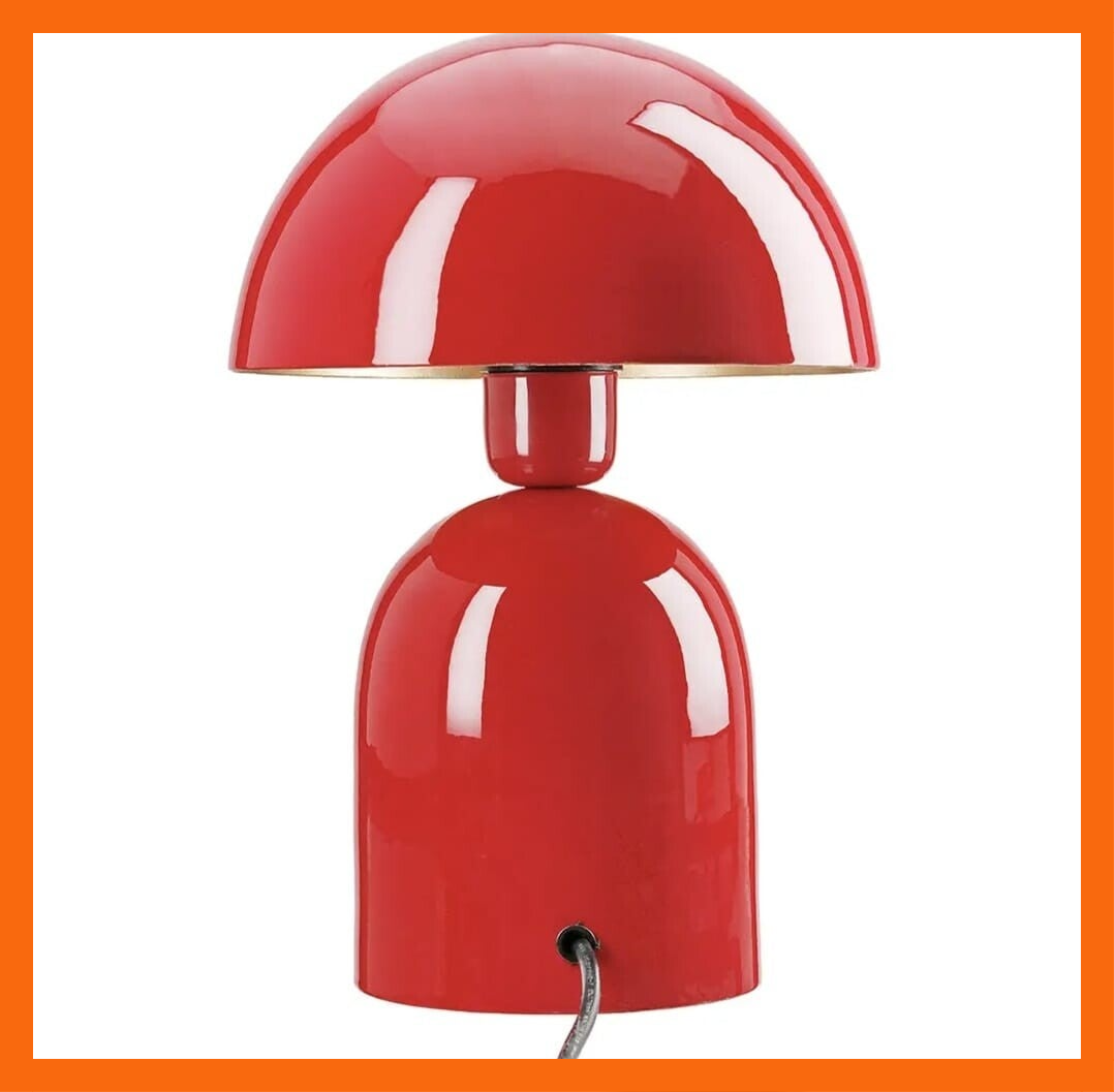 Breng karakter en kleur met deze opvallende rode tafellamp, geïnspireerd op iconische retrovormen met een moderne twist. De stijlvolle paddenstoelvorm en glanzende afwerking maken dit een echte eyecatcher op elk bureau, nachtkastje of dressoir.