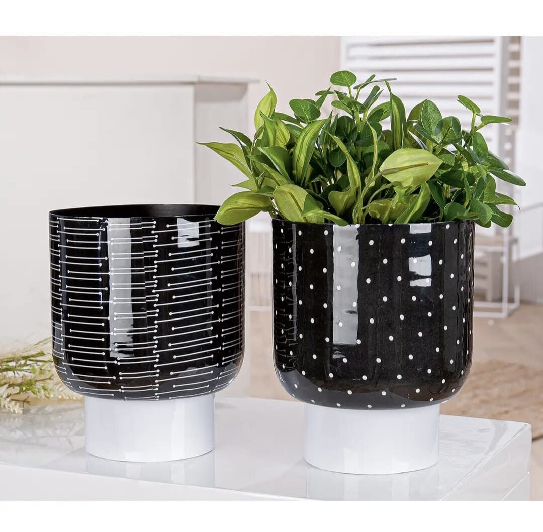 Zwart-wit plantenbak, set van 2 stuks, h. 22 cm