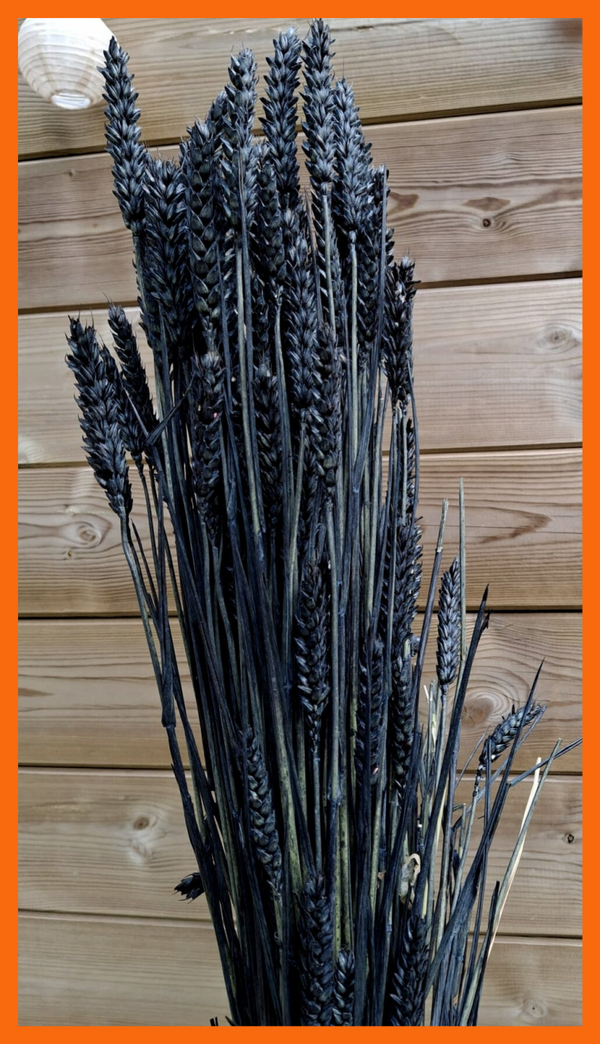 Deze krachtige bos gedroogde tarwe in diepzwarte tint is een echte eyecatcher in elk interieur. De klassieke vorm van de tarwearen gecombineerd met de moderne zwarte kleur geeft een stoer, stijlvol en minimalistisch karakter aan elk droogboeket of als statement in een solovaas.
