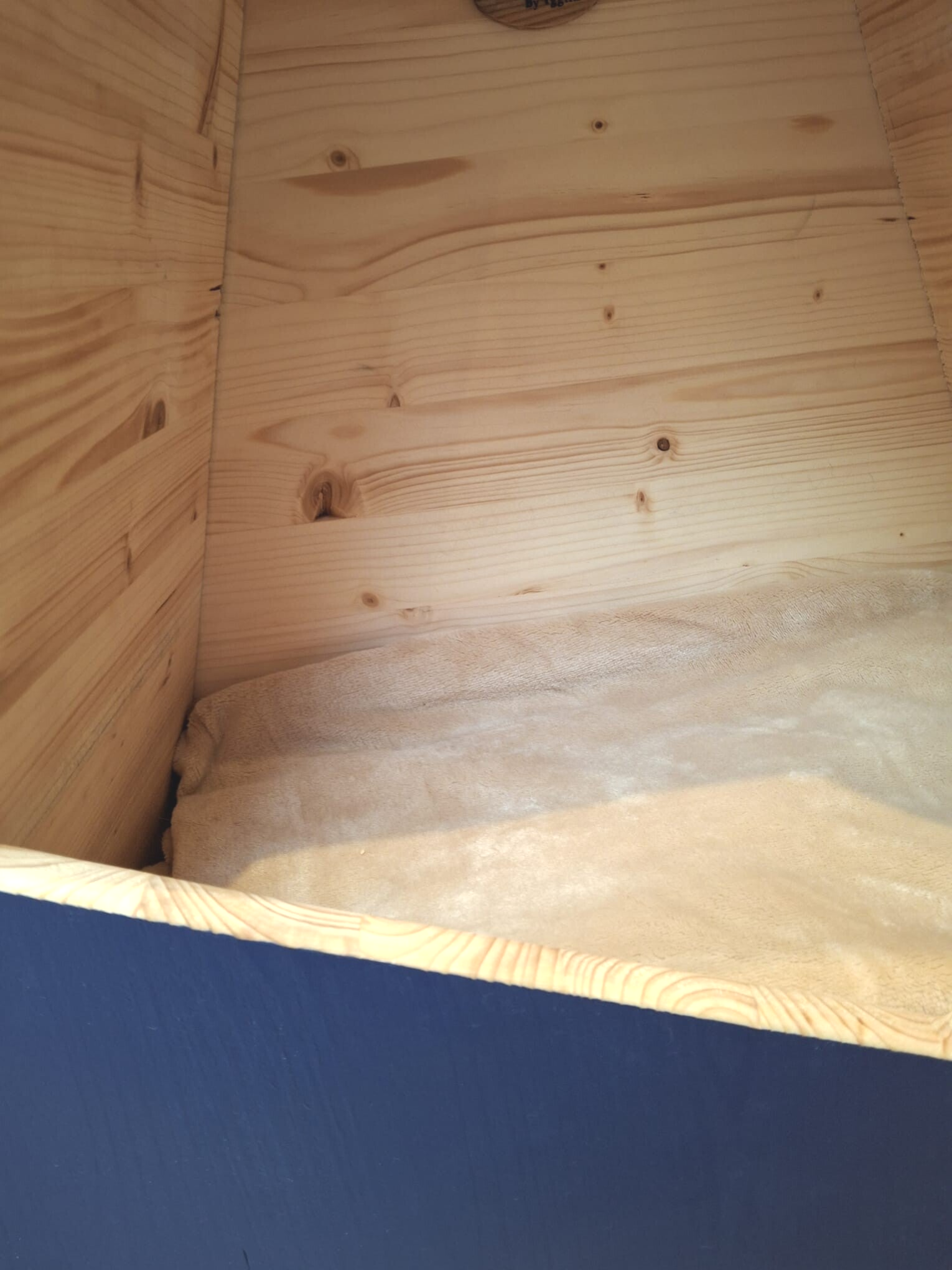 Afgewerkt met dier-, kind- en milieuvriendelijke verf in kobaltblauw.