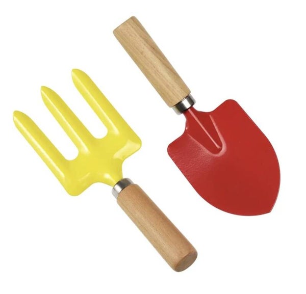 Deze vrolijke tuingereedschapsset van Rex London is perfect voor jonge tuinhelden. De set bestaat uit een stevige rode schep en een felgele hark, allebei met houten handvat en afgeronde vormen voor veilig gebruik.