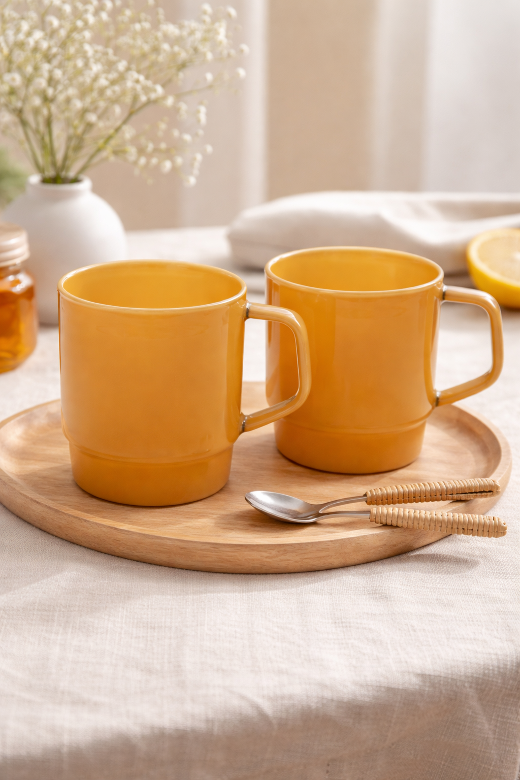 Stapelbare glazen koffiekop 280ml - set van 2 - Licht topaas